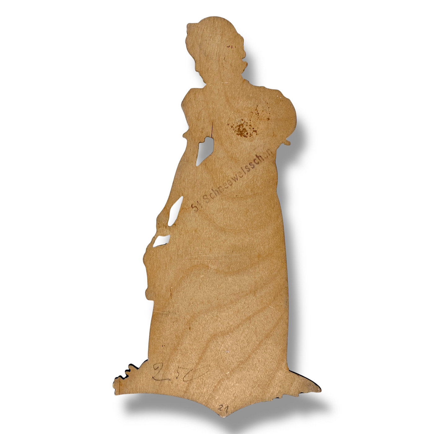 1930er Mertens-Kunst: Art Deco Schneeweißchen, Handbemalt, 21 cm, Märchen-Holzbild 🇬🇧 1930s Alfred Mertens: Antique Art Deco Snow White, Hand-painted, 21 cm, German Wall Figure