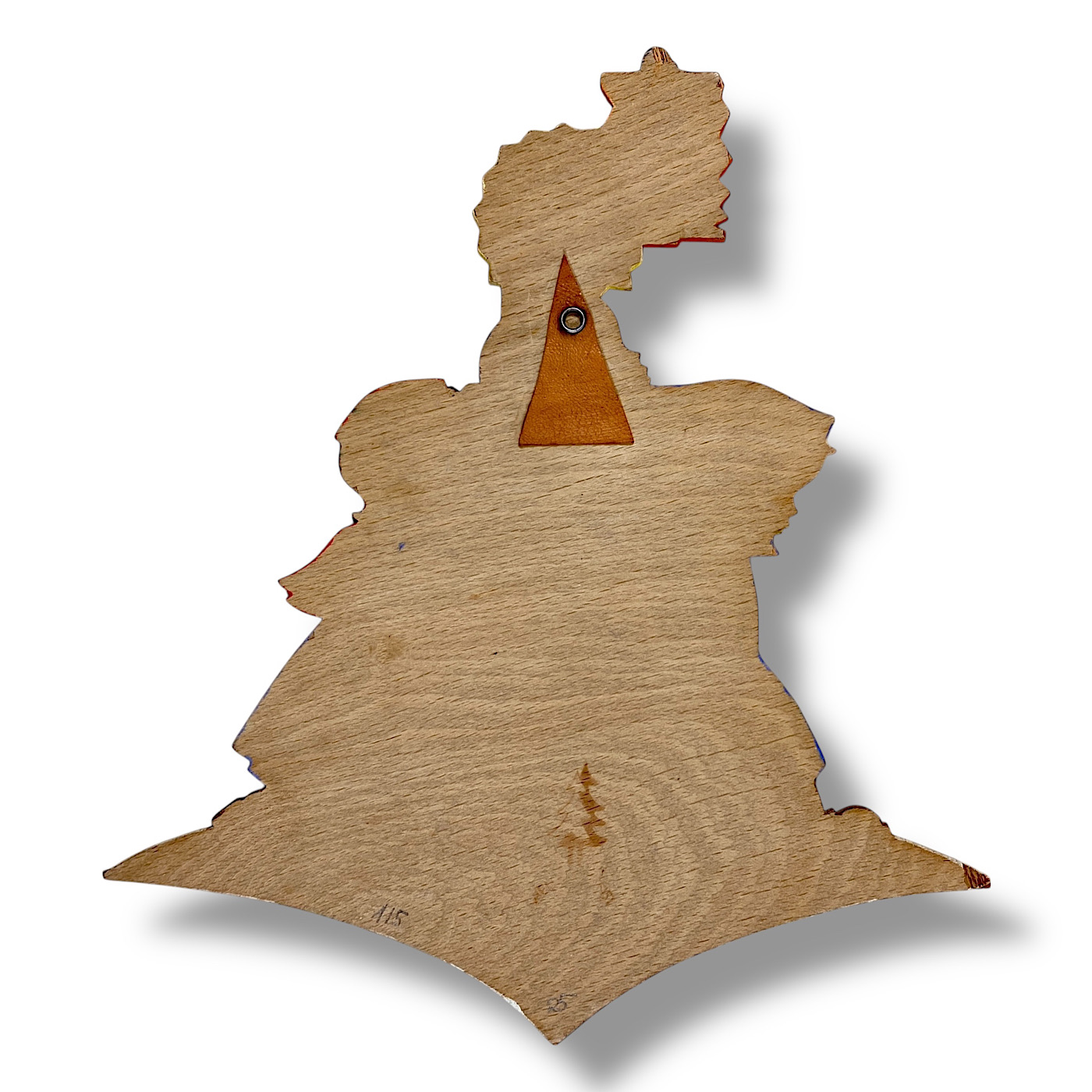 1950er Ravi-Kunst: Schwangeres Schneewittchen mit rosa Tunika, Handbemalt, 23 cm, Märchen-Holzbild 🇬🇧 1950s Ravi-Kunst: Pregnant Snow White with Pink Tunic, Hand-painted, 23 cm, German Wall Figure