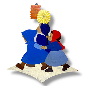 1940er Hellerkunst: Zauberhafte Laternenkinder „Julmond“ (Dezember), Handbemalt, 25 cm, Märchen-Holzbild 🇬🇧 Midcentury Hellerkunst: Enchanting Lantern Children “Julmond” (December), Hand-painted, 25 cm, German Wall Figure