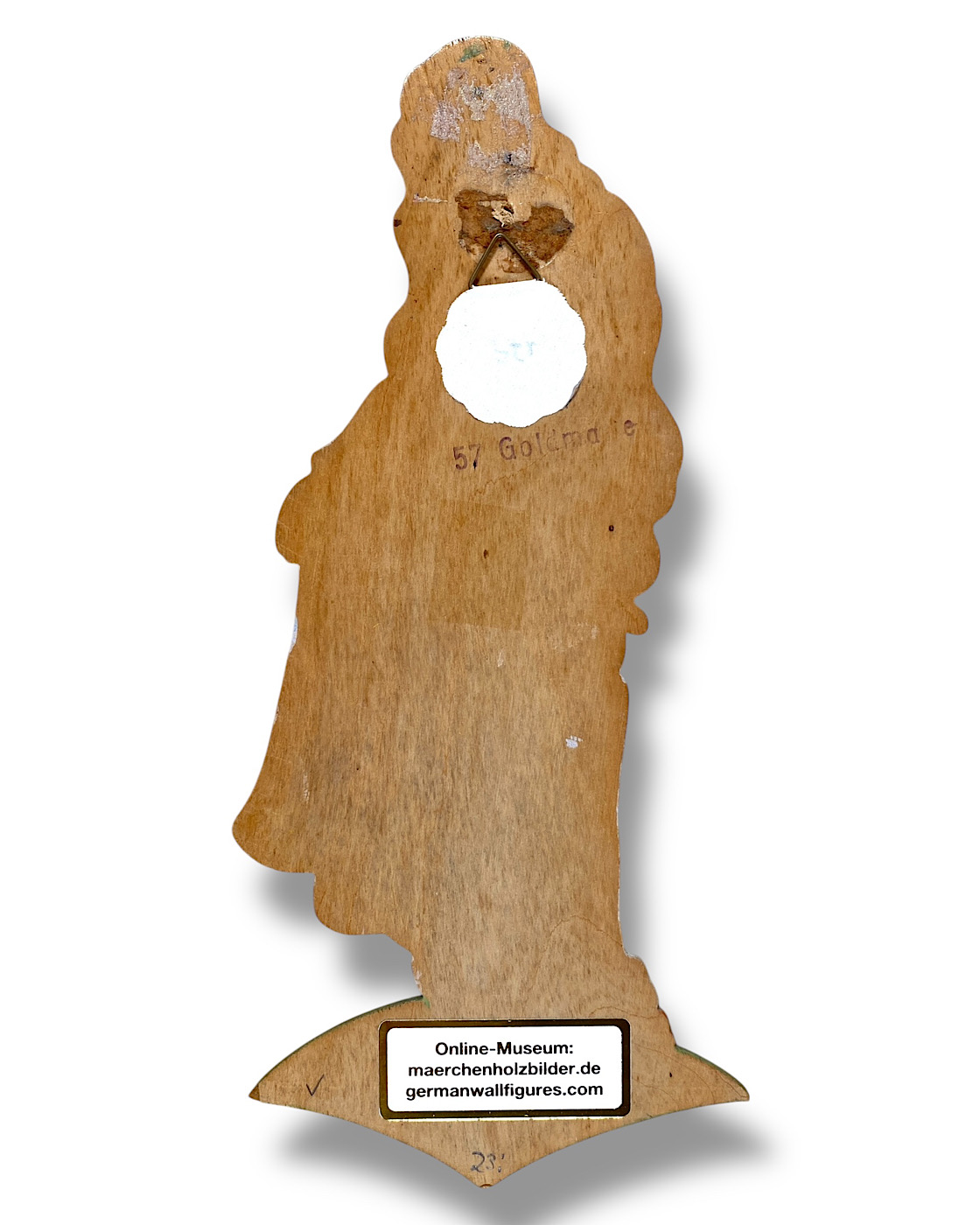 [EN] MOTHER HOLLE: There are two very different versions of this fairy tale. In the Brothers Grimm version, Mother Holle/Hulda has enormous, frightening teeth, and the girls remain unnamed. In Ludwig Bechstein’s version, “Mother Holle” is a man, and the girls are called Goldmarie (Golden Mary) and Pechmarie (Pitch Mary). However, everyone understands the phrase “Mother Holle’s Golden Mary” — at least if they know the story. Mother Holle, Golden Mary, and Pitch Mary are very popular motifs on German Wall Figures of the last century. I’ve seen them, for example, from Mertens, Ravi, and Original Bergischer Engel. (From the book: Vintage German Wall Figures, Die Ära der Märchen-Holzbilder, 2025, Christiane Dietz)