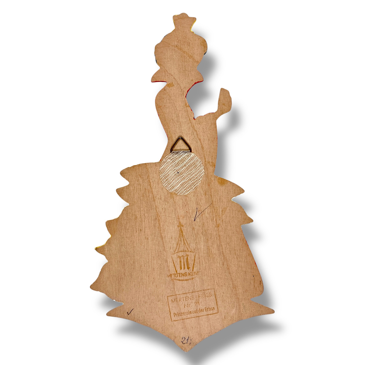 1940er Holz-Wandfigur Mertens-Kunst Märchen 21cm Kleine rote Prinzessin auf der Erbse, Handbemalt 🇬🇧 1940s Wooden Wall Figure Alfred Mertens Fairy Tale, Small Red “The Princess and the Pea”, Hand-painted
