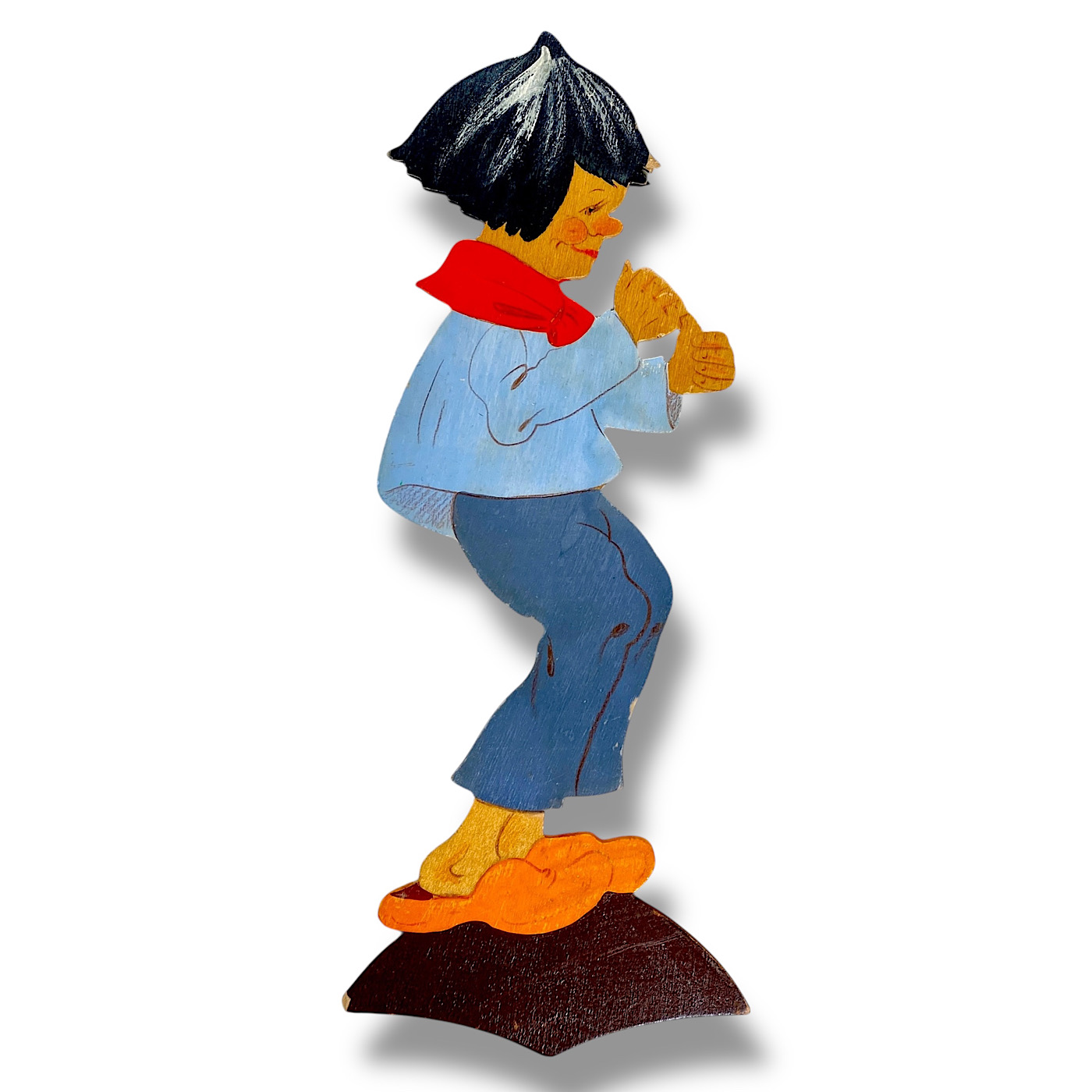 1940er Holz-Wandfigur, Ravi-Kunst Max/Moritz 21cm Früher Max mit rotem Halstuch, Handbemalt 🇬🇧 1940er German Wooden Wall Figure, Ravi-Kunst Max/Moritz 21cm Early Max with Red Scarf, Hand-painted