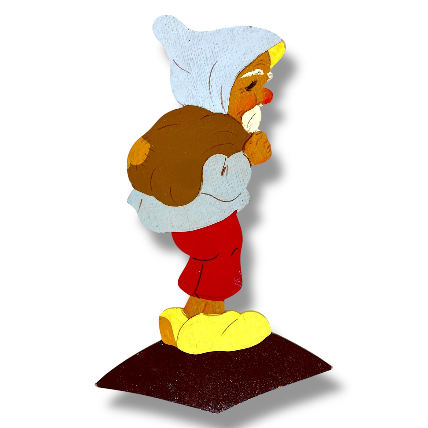 1960er Holz-Wandfigur/Zwerg von Ravi-Kunst: Kleiner Bergarbeiter mit Sack, Handbemalt, 16cm 🇬🇧 1960s Wooden Wall Figure/Dwarf by Ravi-Kunst: Small Miner with Sack, Hand-painted 16cm