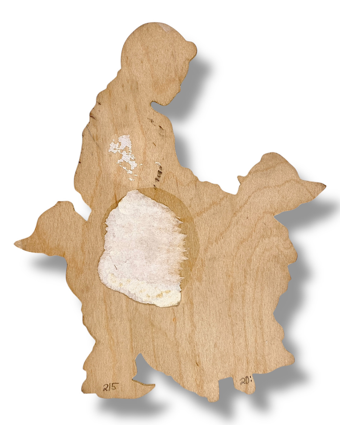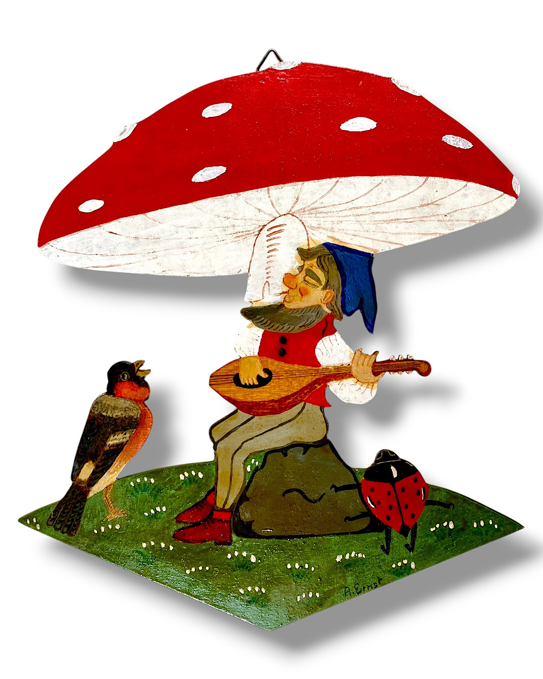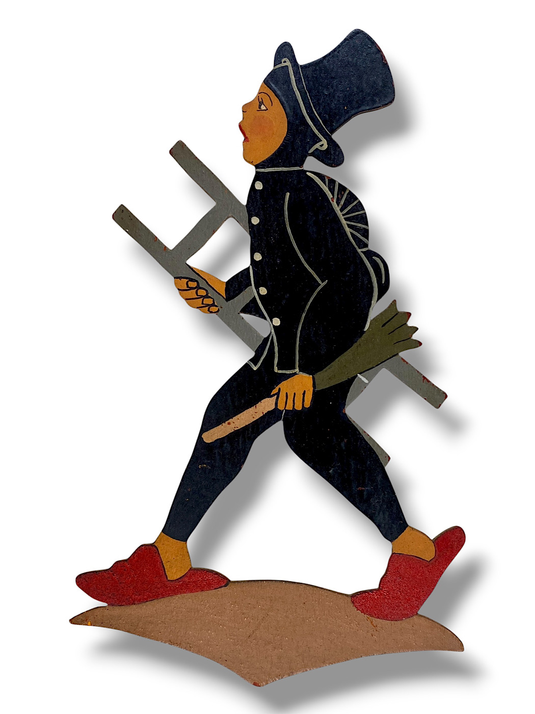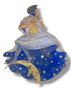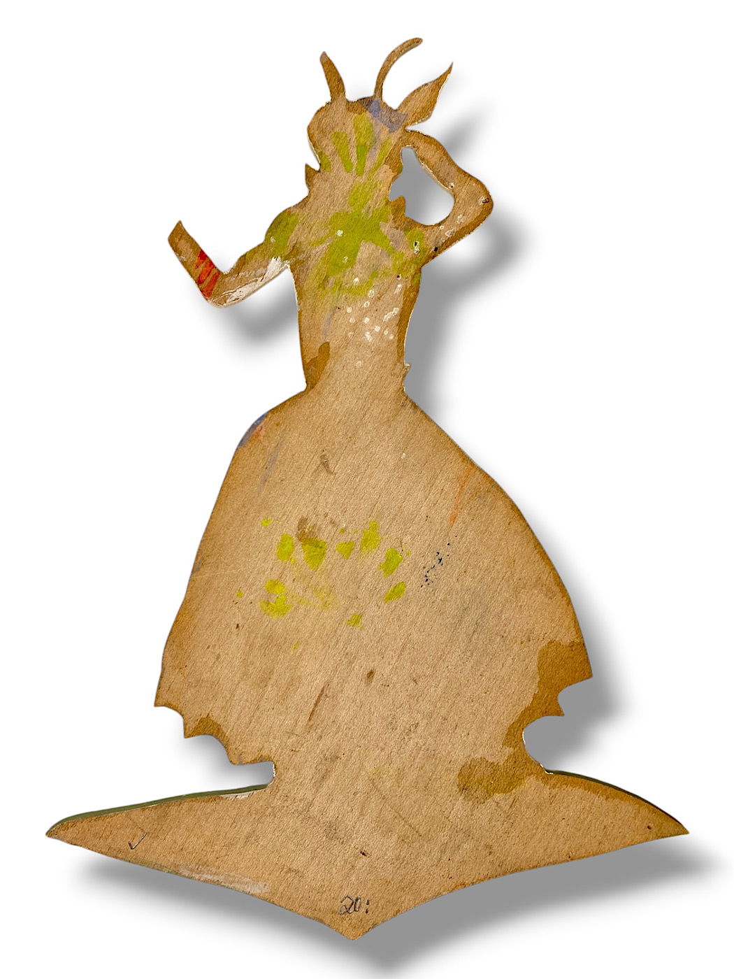 🇬🇧 KUNSTGEWERBLICHE HANDARBEIT: On the back of these historical and mostly rather small German Wall Figures, they almost always stamped “Kunstgewerbliche Handarbeit,” meaning handmade arts and crafts. And there was a motif number, too, abbreviated as “No.” That’s why I also call it the “Unknown No Series.” They were probably produced in the 1930s and 1940s, although during the Second World War, cardboard was apparently used instead of wood—presumably due to the material shortages during wartime. That happened to other producers, too. This manufacturer also made many tiny place card stands in the same style. Does anyone know the correct name of the manufacturer? Please get in touch! (From the Book: Vintage German Wall Figures, Die Ära der Märchen-Holzbilder, 2025, Christiane Dietz)