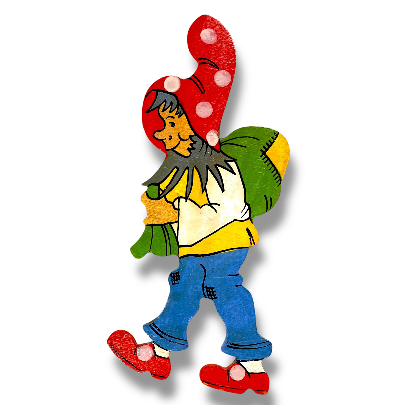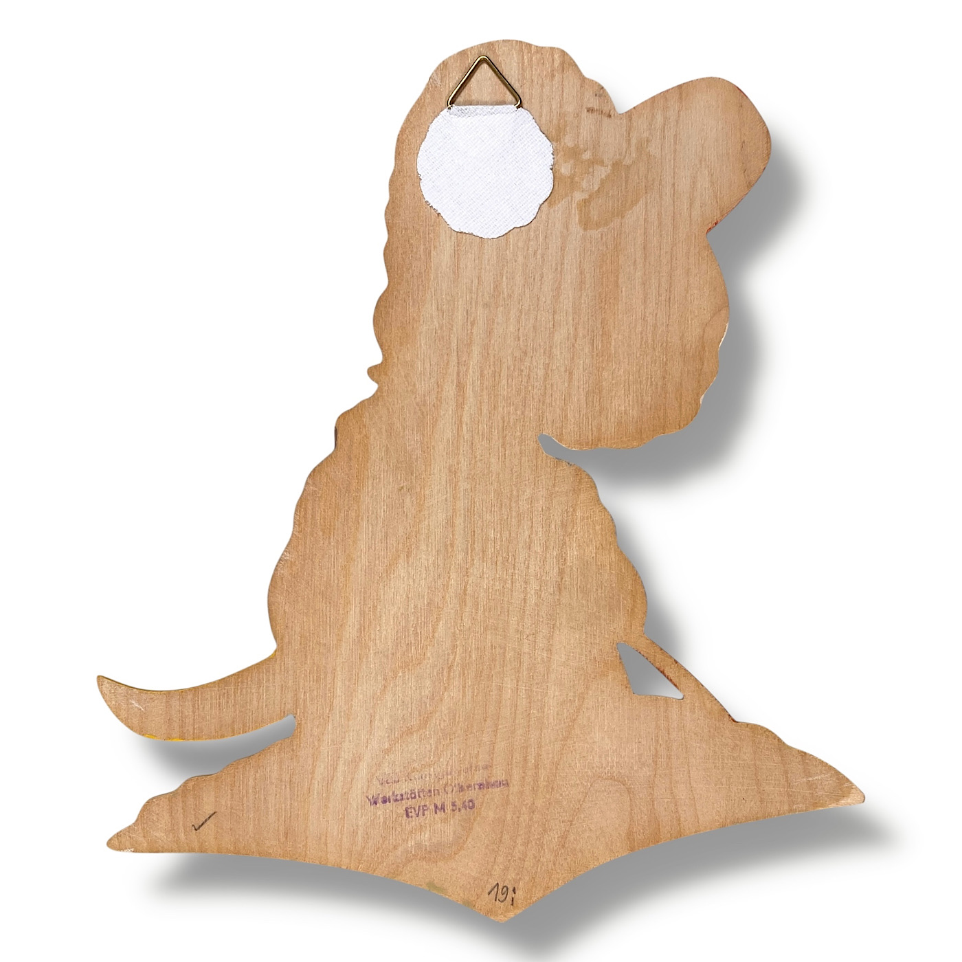 🇬🇧 EDELHOLZ FREIBERG, BASIC OVERVIEW: This manufacturer from the Ore Mountains produced German Wall Figures from the 1940s to presumably the 1960s under its own name. The owner–and most likely also the artist–was Margarethe Edel. The name “Edelholz” (literally “precious wood”) likely stems from her surname and fits well with the high quality of the figures. “Edelholz Freiberg” was officially registered in the Freiberg commercial register in 1942, during the Second World War. Most likely in the 1960s, the company was nationalized by the GDR and became part of the “VEB Kunstgewerbe-Werkstätten Olbernhau,” which continued to produce German Wall Figures under that name for at least another decade. (Buch/25)