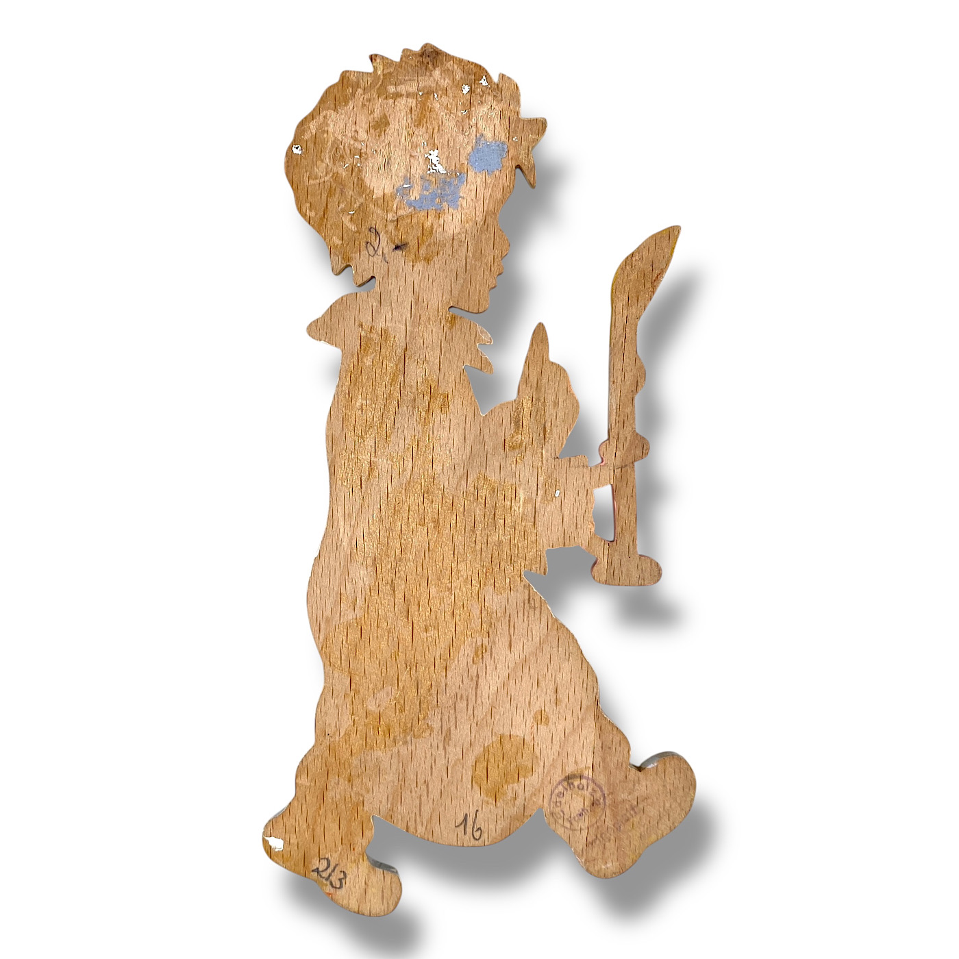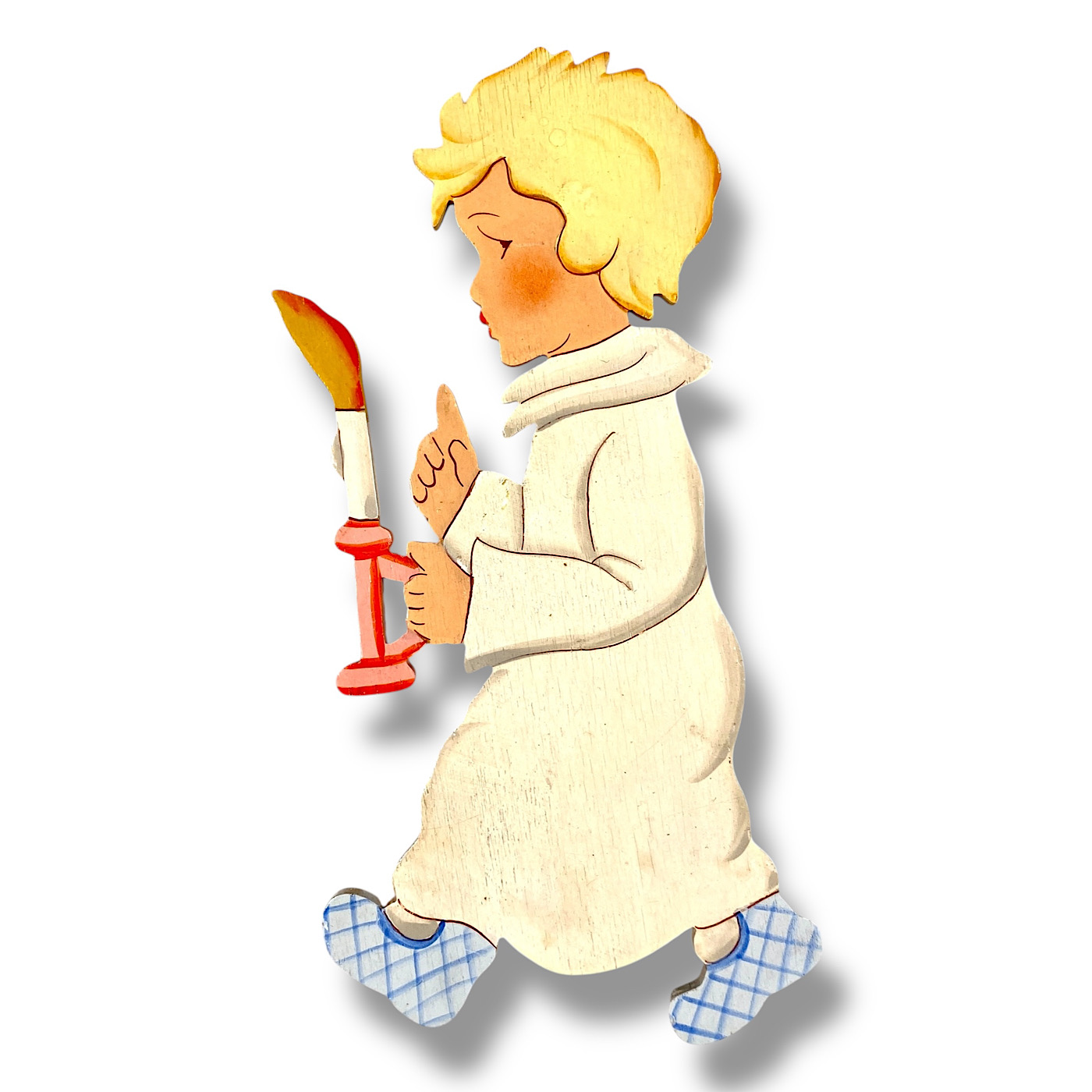 1950er Holz-Wandfigur Edelholz Freiberg DDR 16cm Reizendes kleines Kerzenkind, Handbemalt 🇬🇧 1950s Wooden Wall Figure Edelholz Freiberg GDR 16cm Charming Little Candle Child, Hand-painted