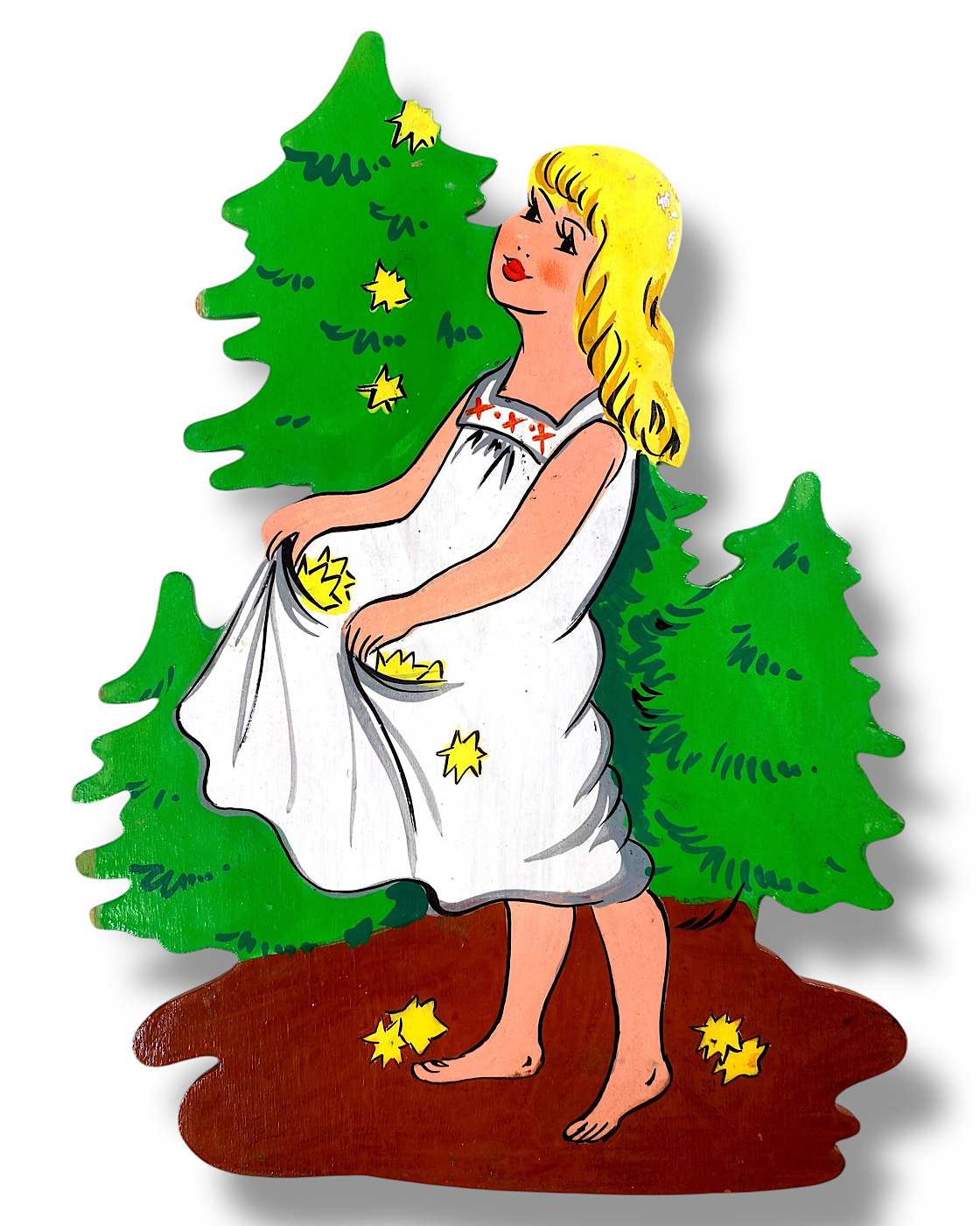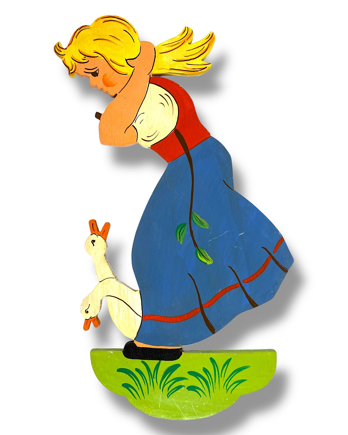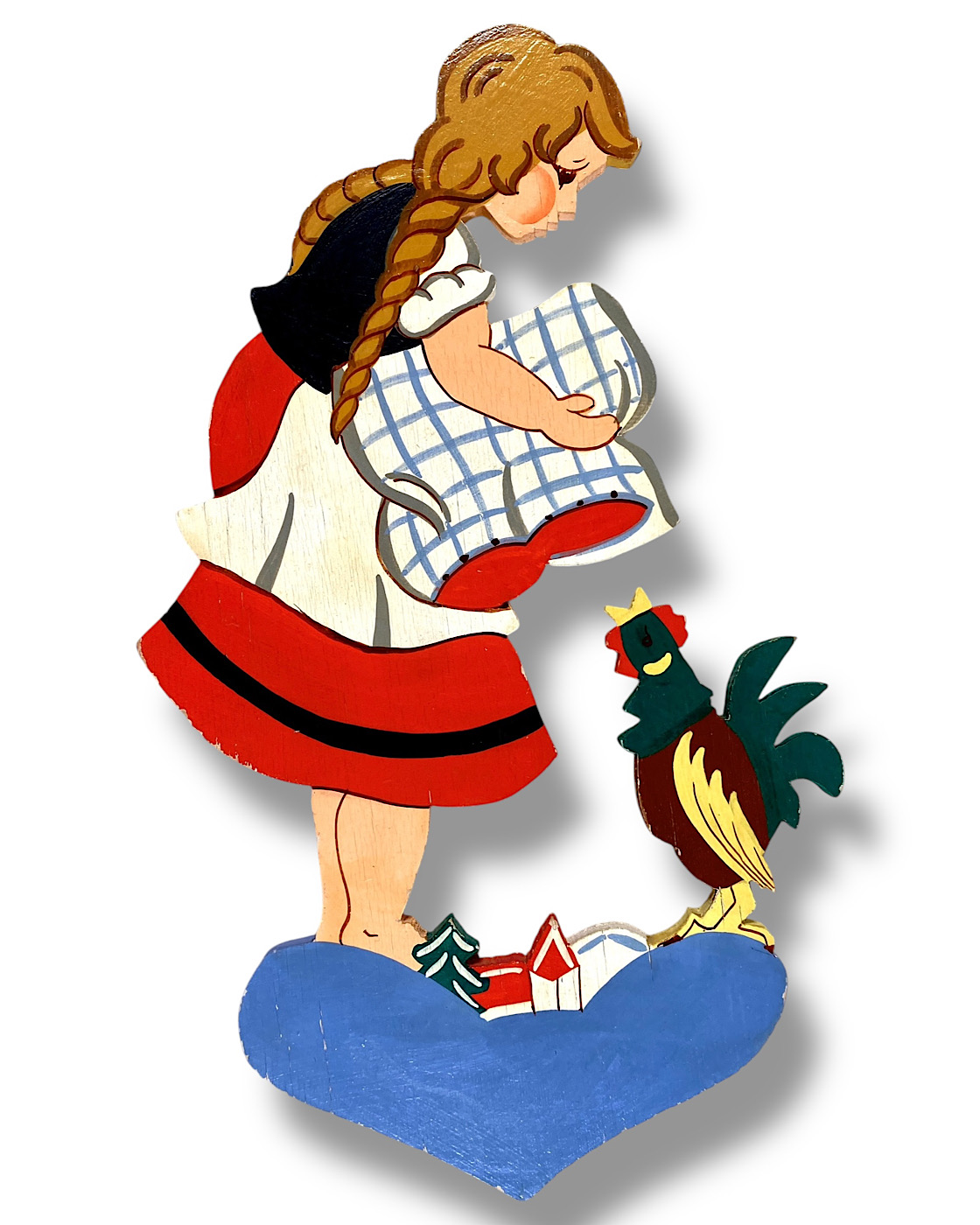 Vintage Märchen-Holzbild: Goldmarie mit Zöpfen, 1960er Rie-Bilder