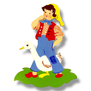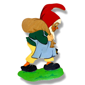 GROSSMANN, MÄRCHEN: Obwohl Grossmann Reit im Winkl eigentlich der Spezialist für Zwergen-Holzbilder war, gibt es auch einige Märchenmotive. Am Sterntaler-Märchen lässt sich besonders gut verdeutlichen, wie sich die Figuren über die Jahrzehnte verändert haben: Das 1940er-Sterntaler war ernst, weiß, schmal und noch komplett handbemalt, wohingegen die 1970er-Figur niedlich, hellblau und eine Siebdruck-Figur war. Interessant ist, dass es das Sterntaler in den frühen Jahren auch mit schwarzen Haaren gab, mit einem Sternenkranz. Das häufigste Grossmann-Märchen war wohl das Schneewittchen, was wiederum gut zum Zwergen-Schwerpunkt von Grossmann passt. Weitere Märchen, die ich als Grossmann-Figuren kenne: Dornröschen, Rotkäppchen, Hans im Glück, Froschkönig, Aschenputtel, Brüderchen und Schwesterchen sowie die Gänsemagd, meist als niedliche Gänseliesel dargestellt.