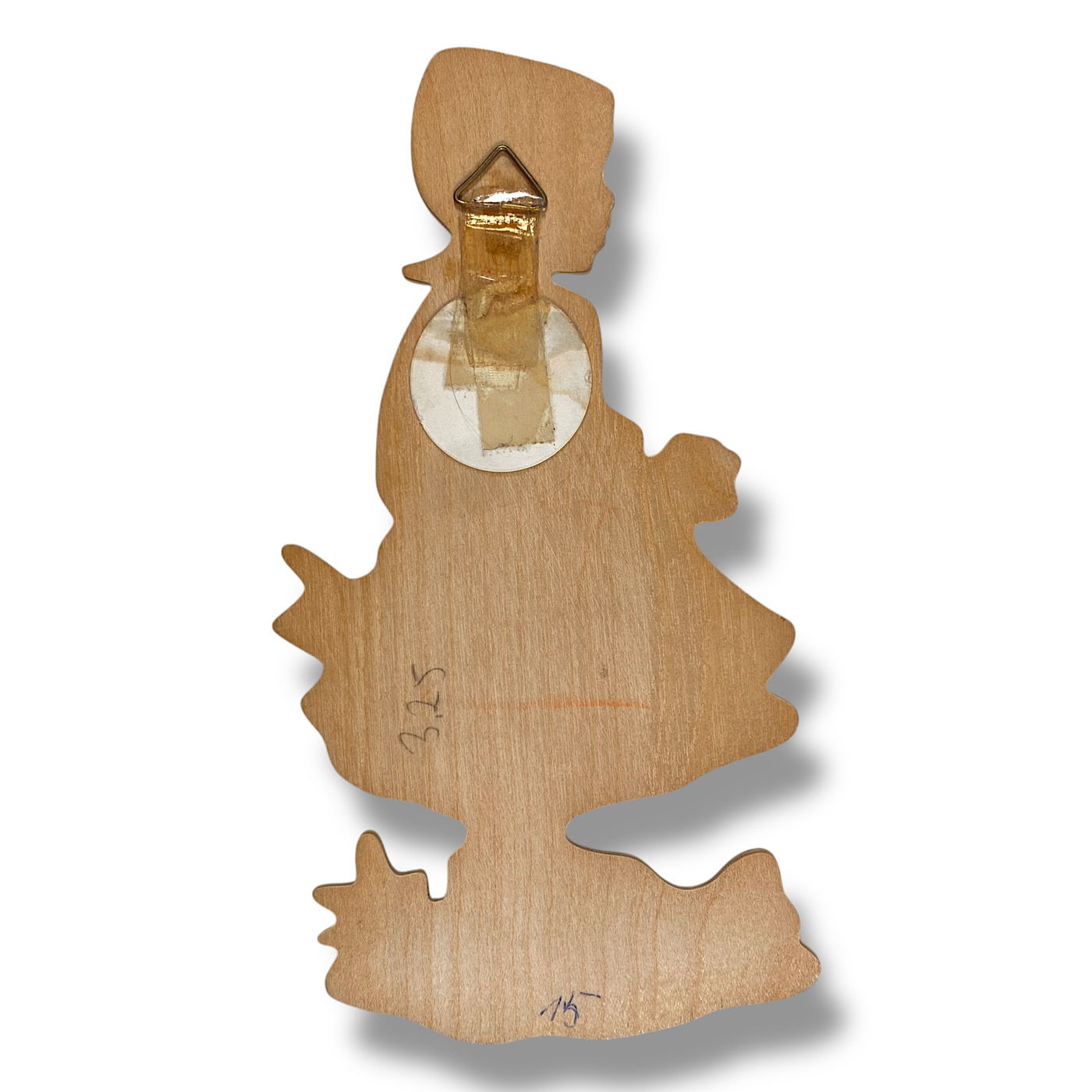 1960er Original Bergischer Engel: Kleiner Max mit Maikäfer-Tüte, Siebdruck, 15 cm, Märchen-Holzbild 🇬🇧 1960s Original Bergischer Engel: Small Max with May Beetle Bag, Screen-printed, 15 cm, German Wall Figure