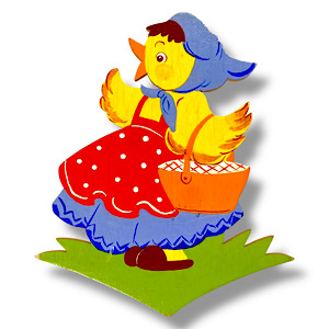 1940er Holz-Wandfigur, Original Bergischer Engel Tiere 14cm Süße Kükendame mit Korb, Handbemalt 🇬🇧 1940s German Wooden Wall Figure, Original Bergischer Engel Animal, Cute Chick Lady with Basket, Hand-painted