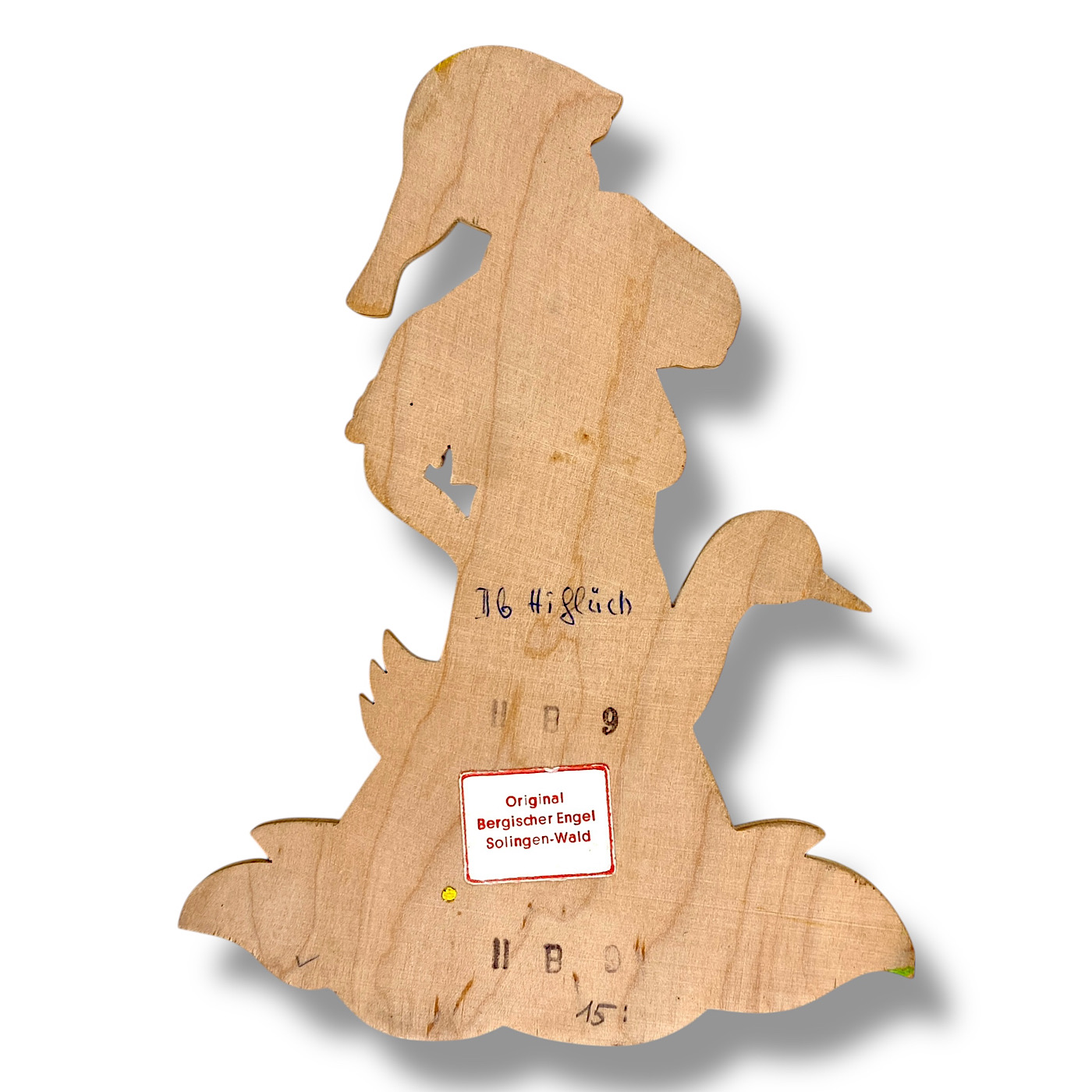 1950er Original Bergischer Engel: Kleiner Hans im Glück mit O-Mund 15cm Handbemalt, Märchen-Holzbild, Wandfigur 🇬🇧 Midcentury Original Bergischer Engel: Small Hans in Luck with O-Mouth 15cm Hand-painted, German Wall Figure, Wooden Toy, Fairy Tale