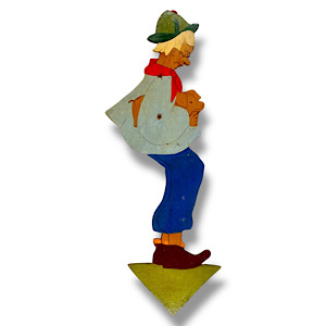 PFEIL, STUTTGART-VAIHINGEN: Es gibt einen kleinen Wanderer mit Stock und Stiefeln vom Hersteller „Pfeil“. Auf dem weißen Aufkleber steht „Pfeil...