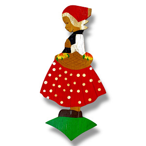 HOLSTEN-KUNST: Von Holsten-Kunst stammen wundervolle Märchen-Holzbilder, alle sind handbemalt und stammen wohl aus den 1930er-Jahren: Das Schneidersitz-Aschenputtel im rotem Rock...