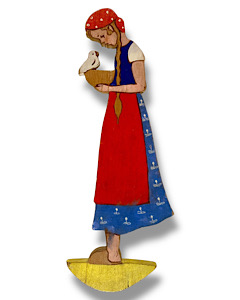 1930er Wrangell-Kunst (Karin von Wrangel): Frühes schmales Aschenputtel, handbemalt auf 0,7 mm Sperrholz, 23cm [EN] 1930s Wrangell-Kunst (Karin von Wrangel):...