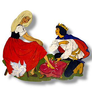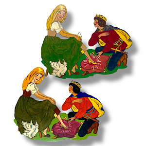 VOBACH: Die allerersten Laubsägevorlagen von Vobach mit echten Märchenmotiven stammen aus den 1930er Jahren; es waren zum Aufbügeln gedachte Abplättmuster....