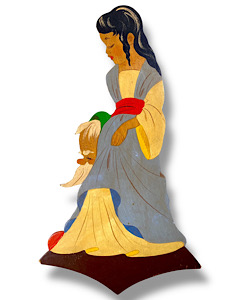 1940er Hellerkunst: Nachkriegs-Mutter mit Nachttopf-Kind, Sonderanfertigung, Handbemalt, 28 cm, Märchen-Holzbild 🇬🇧 1940s Hellerkunst: Postwar Mother with Chamber Pot Child, Hand-painted, Custom-Made,...