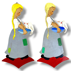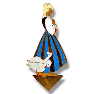 1960er Rie-Bilder: Gänsemagd mit wehendem Haar, handbemalt auf 0,5 mm-Sperrholz, 25cm [EN] 1960s Rie-Bilder: Goose Girl with flowing hair, hand-painted...