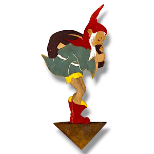 1960er Unbekannt (Hellerkunst?): Zwerg mit nackten Beinen, dickes Holz 17cm [EN] Naked Legs Dwarf on Thick Plywood HAPTIK: Das hervorstechendste...