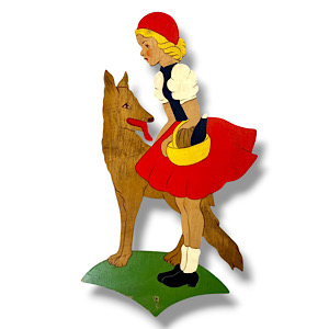 1930er Unbekannt: Pappe-Rotkäppchen mit Wolf, Handbemalt 25cm [EN] Little Red Riding Hood on Cardboard PAPPE-FIGUREN: In den Kriegsjahren (Zweiten Weltkrieg)...