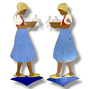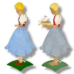 1940er Unbekannt (Mertens-Kopie?): Tanzende Trachtenmädchen aus Betzingen (Schwaben), Sperrholz, 20 cm, Laubsägearbeit [EN] Midcentury Dancing Girls in Tradional Clothes from...