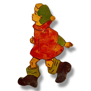 HAMPELMÄNNER, 3D-AUGEN: Ein historischer Hersteller von Hampelmännern fällt besonders durch die 3D-Augen seiner Figuren auf. Sie sind auffällig dick mit...