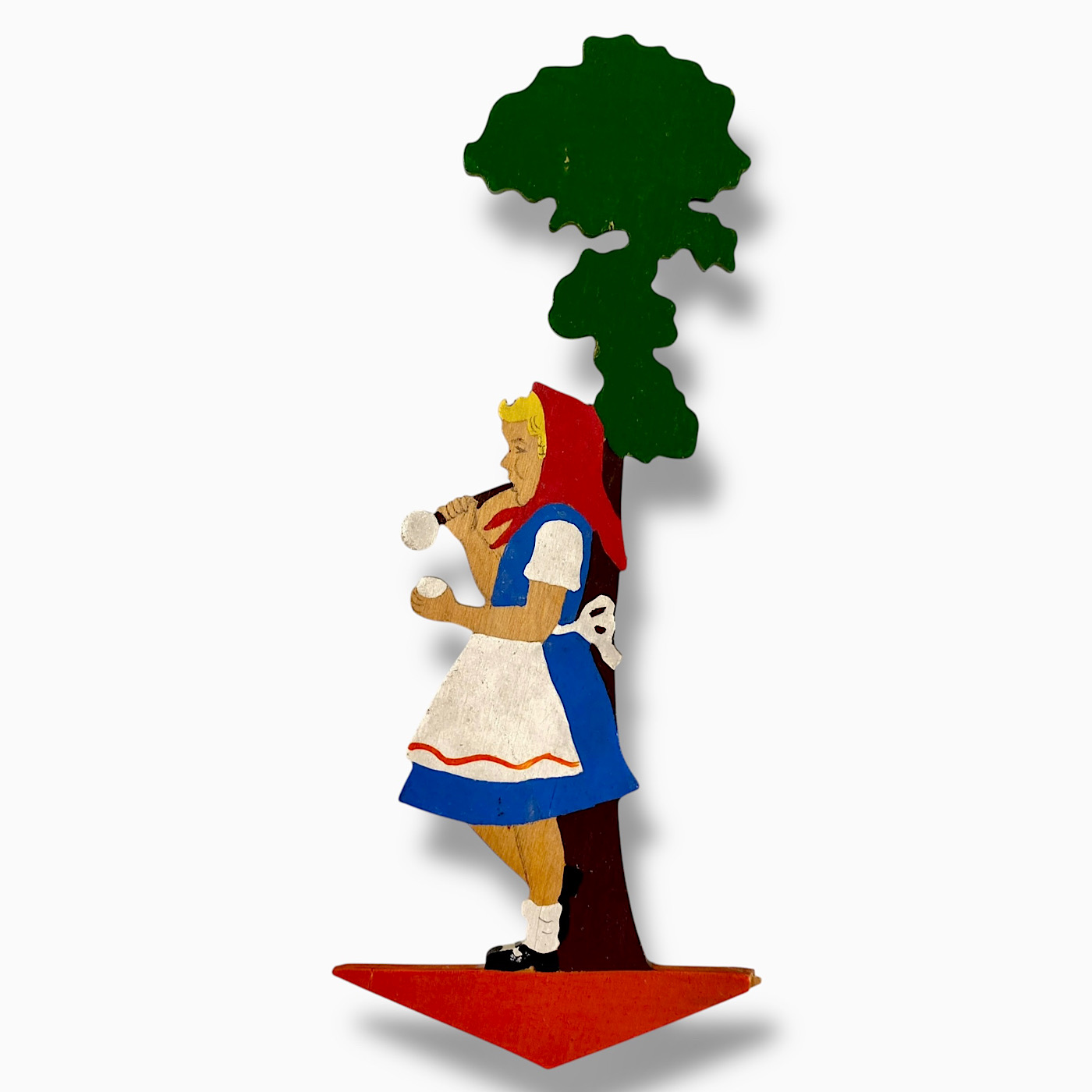 1930er Frankenwaldkunst: Seifenblasenmädchen mit Baum 21cm 🇬🇧 Antique Soap Bubble Girl with Tree (Holz-Wandfigur, German Wall Figure)