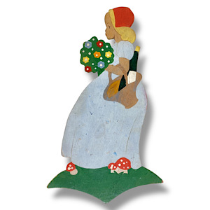 LIEBLINGE: Es gibt viele Märchen-Holzbilder, die zu meinen Lieblingen gehören. Ich freue mich immer wieder, wenn ich ein neues Motiv entdecke oder sogar einen neuen Liebling. Mir sind bisher mehrere Tausend Motive bekannt, aber ich bin sicher, dass es noch viele Tausend andere gab, die ich noch nicht kenne. Meist ist eine Figur ein Liebling, weil es ein wunderschönes Motiv ist, aber manche sind auch einfach originell oder lustig, oder sie haben eine anrührende Widmung auf der Rückseite. Viele meiner Lieblinge sind noch komplett handbemalte Exemplare aus dem frühen 20. Jahrhundert, oft noch im Art Deco Stil gehalten.