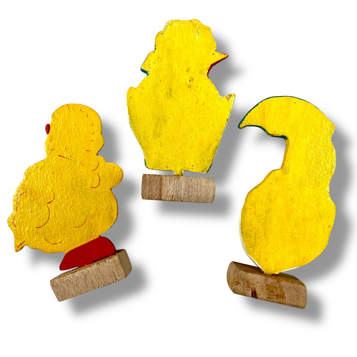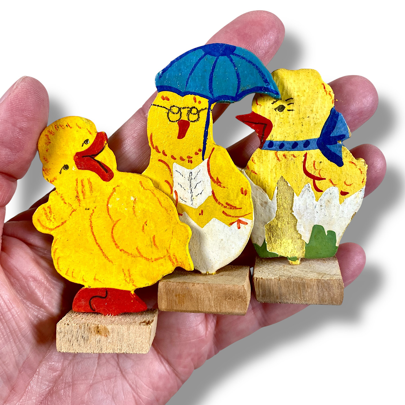 1930er „Kunstgewerbliche Handarbeit“ (?): Miniatur-Küken als Aufstellfiguren, Handbemalt 6-7cm [EN] Antique Miniature Chicks as Easter Decoration