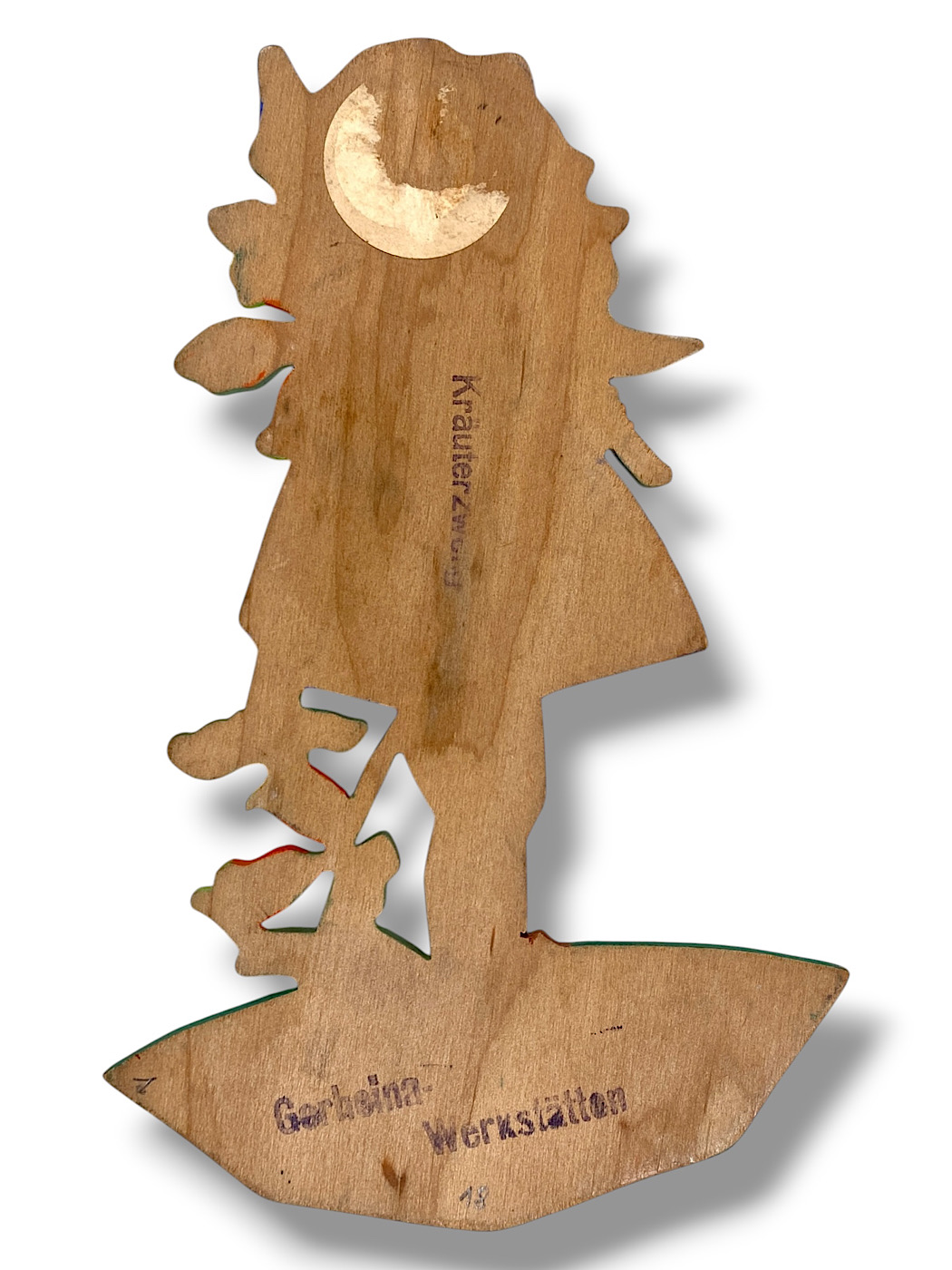🇬🇧 GERHEINA: The German Wall Figures from the „Gerheina Werkstätten“ likely date back to the 1930s and 1940s. All figures are very original and feature a green base with a finely crafted black decoration at the bottom. One wood picture bears a handwritten dedication: “Christmas 1944” (translated). The name “Gerheina” is quite unusual and may be a compound (like “Ravi”) — possibly derived from two names, such as “Gerhard Heinrich.” On the backs, in addition to the Gerheina name stamp, there is always another stamp with the figure’s title. Known motifs include the “Dwarf Protector” with sword and shield, the “Dwarf King,” the “Toadstool Dwarf,” the “Stargazer,” the “Little Shoemaker,” a Rumpelstiltskin, and the “Glutton” with beer barrel and mug (all translated). Does anyone know more about Gerheina? Please get in touch! (From the Book: Vintage German Wall Figures, Die Ära der Märchen-Holzbilder, 2025, Christiane Dietz)