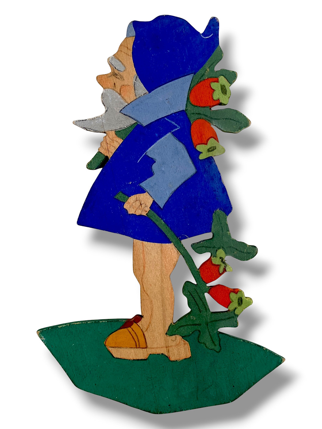 1940er Gerheina: „Kräuterzwerg“ mit Hagebutten, Handbemalt 18cm 🇬🇧 “Herb Dwarf” with Rose Hips (Märchen-Holzbild, German Wall Figure) *