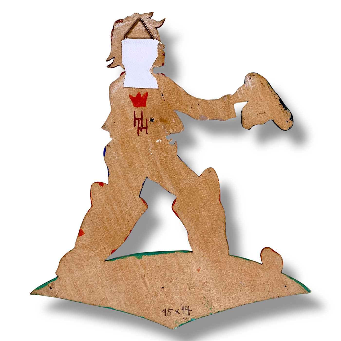 1940er HH mit Krone: Däumling mit ausgestrecktem Arm, Handbemalt 15x14cm [EN] Little Thumb with Hat in his Hand