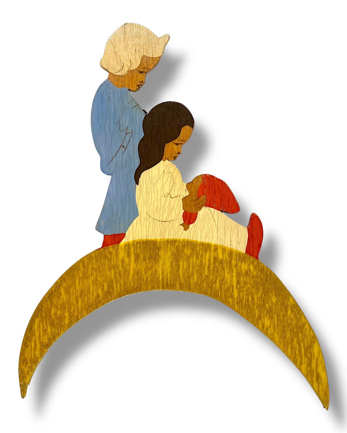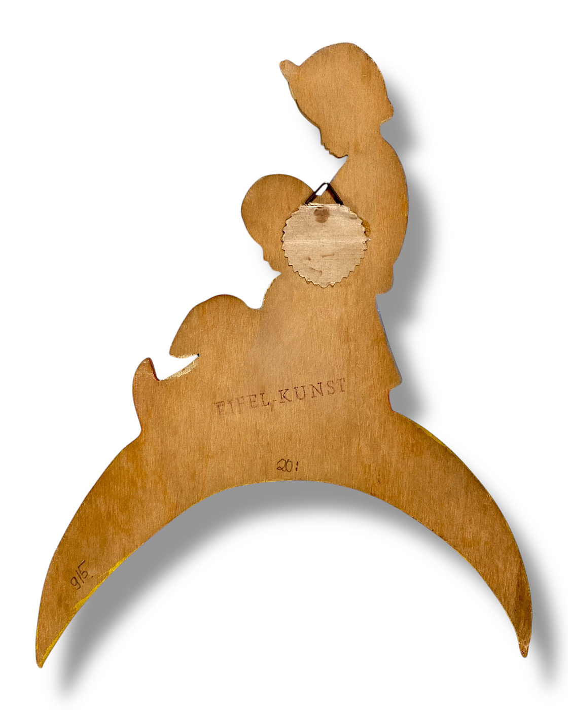 1940er Eifelkunst: Peterchens Mondfahrt mit Anneliese und Puppe, Handbemalt 20cm 🇬🇧 Little Peter’s Journey to the Moon with Annelie and Doll (Märchen-Holzbild, German Wall Figure)