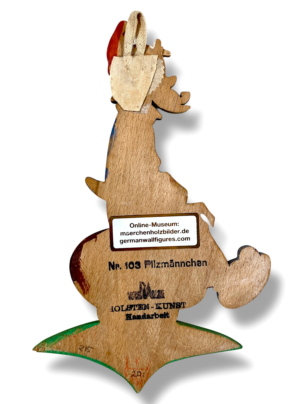 1930er Holsten-Kunst: „Pilzmännchen“ auf Steinpilz, Handbemalt 20cm [EN] Dwarf on Cep Mushroom, German Wall Figure