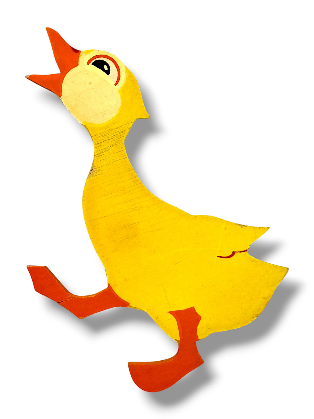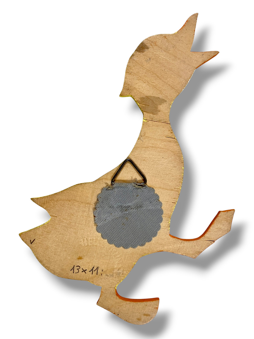 1960er Hellerkunst: Fröhliches kleines Entlein, Siebdruck 13×11cm 🇬🇧 Cheerful Vintage Mini Duckling (Kinder-Holzbild, German Wall Figure)