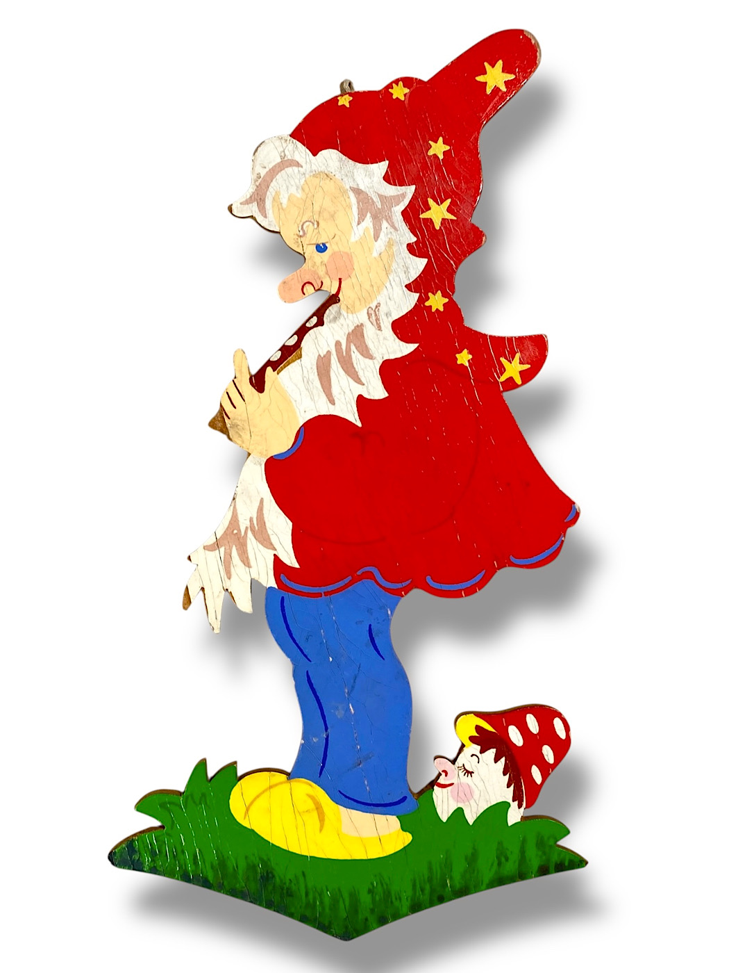 1960er Original Bergischer Engel: Roter Flötenzwerg mit Sternen-Kapuze, Siebdruck 22cm [EN] Red Dwarf with Star Hood