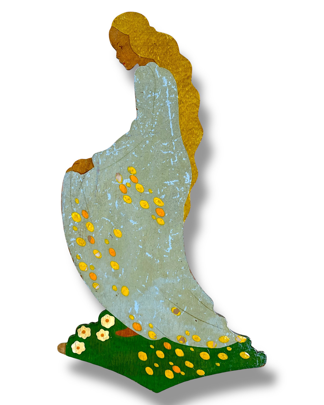 1930er Märchen-Holzbild: Ätherische Vorkriegs-Goldmarie, Mertens-Kunst