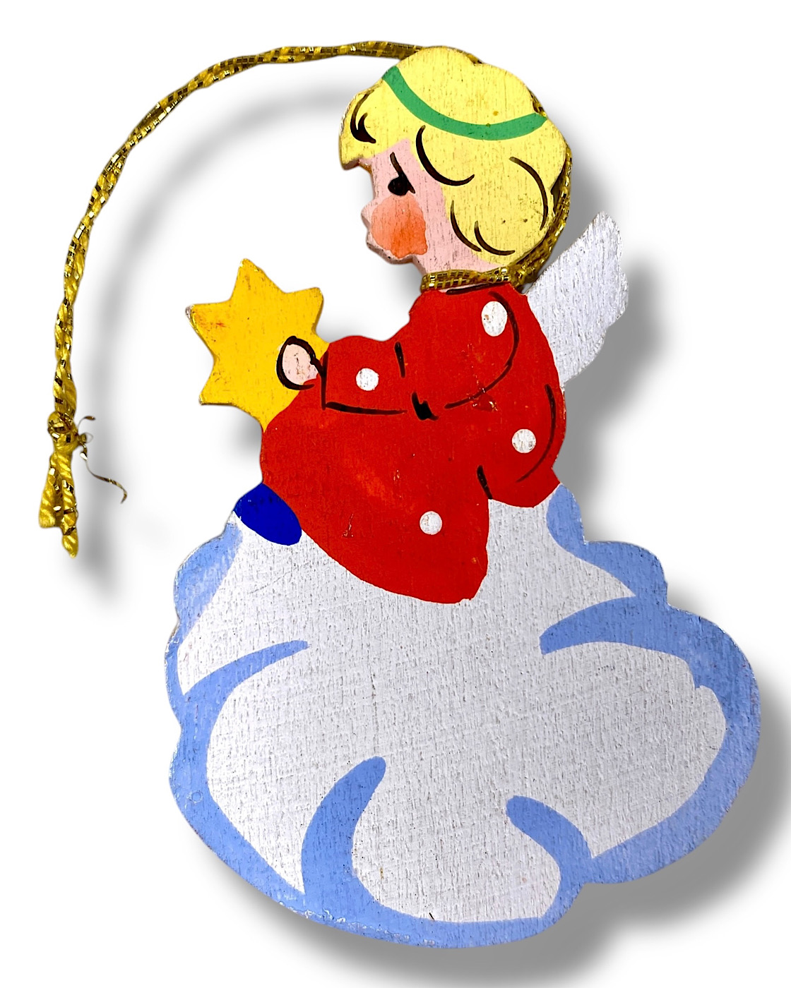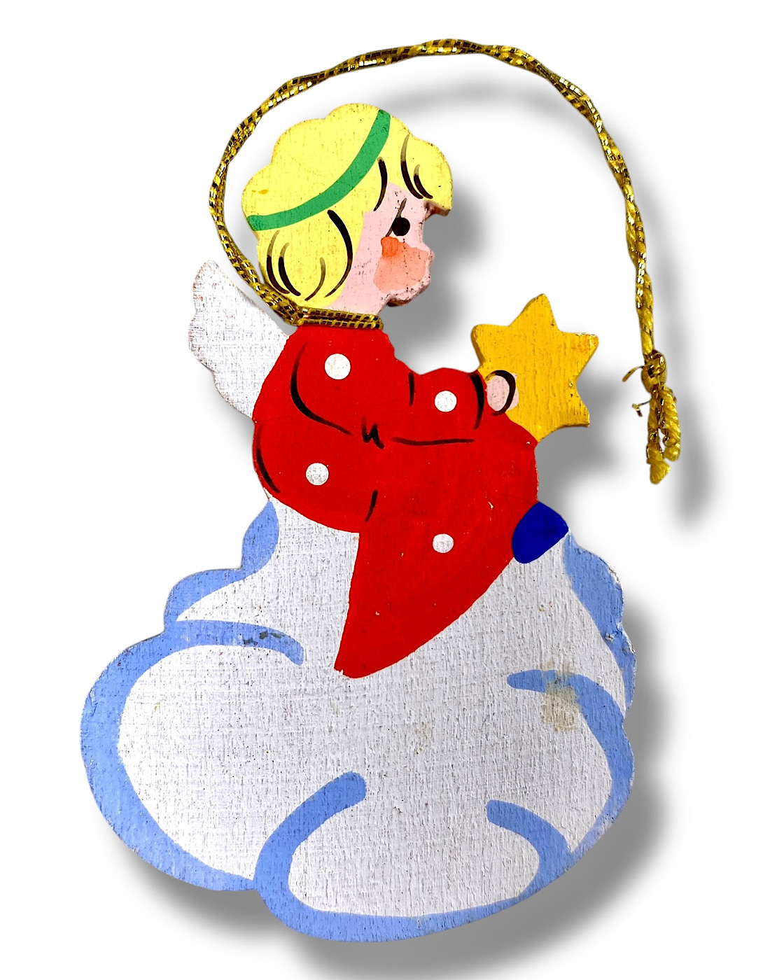 1950er Münchner-Kunst: Kleiner roter Wolkenengel 🇬🇧 Tiny Red Cloud Angel (Christbaumschmuck, Christmas Tree Decoration)